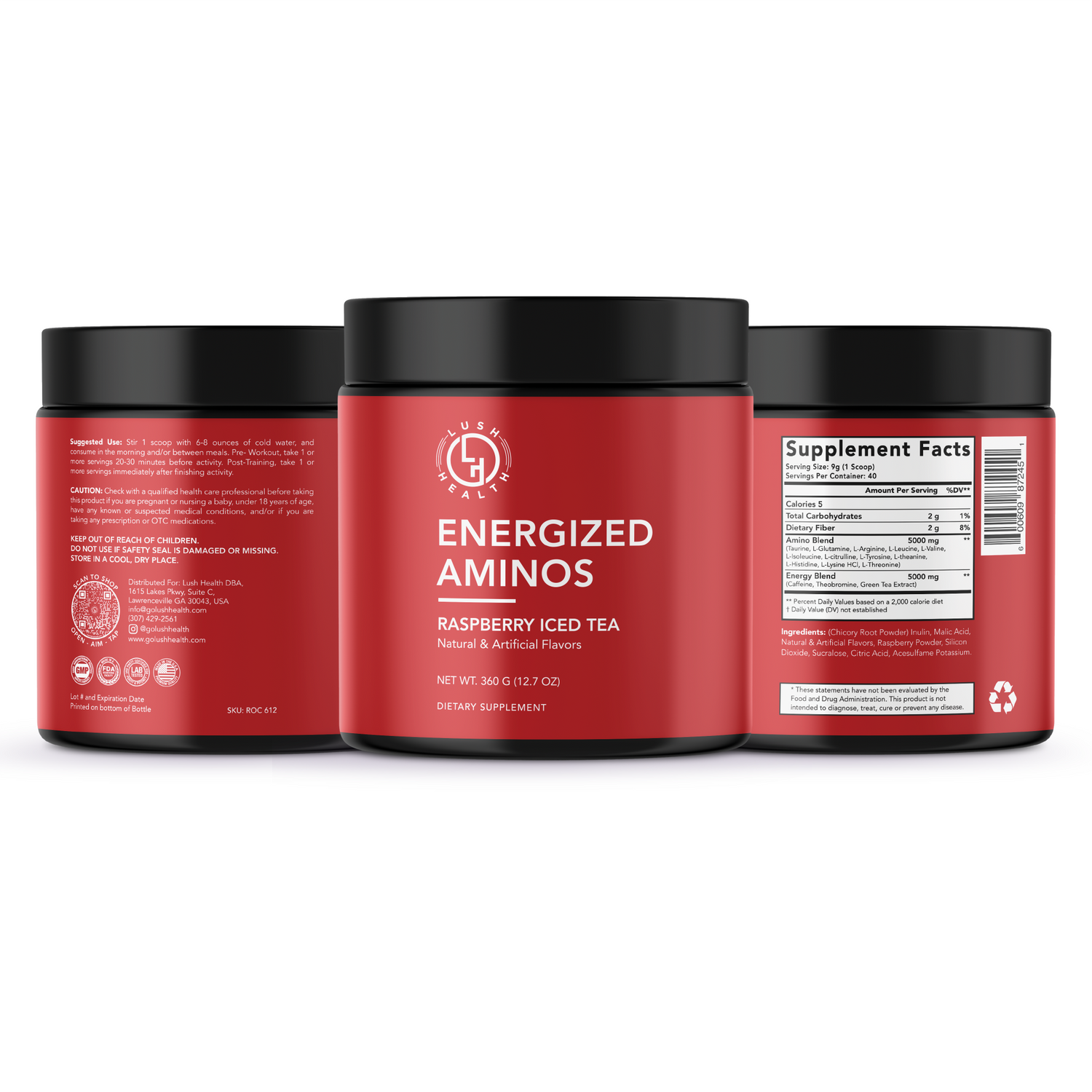 - Superior 2 in 1 Nutritional Blend: Energized Aminos by Lush Health is the combination of 5000mg of 12 key amino acids & 5000mg of energy blend in each serving. It provides a steady flow of quality amino acids and energy within your body