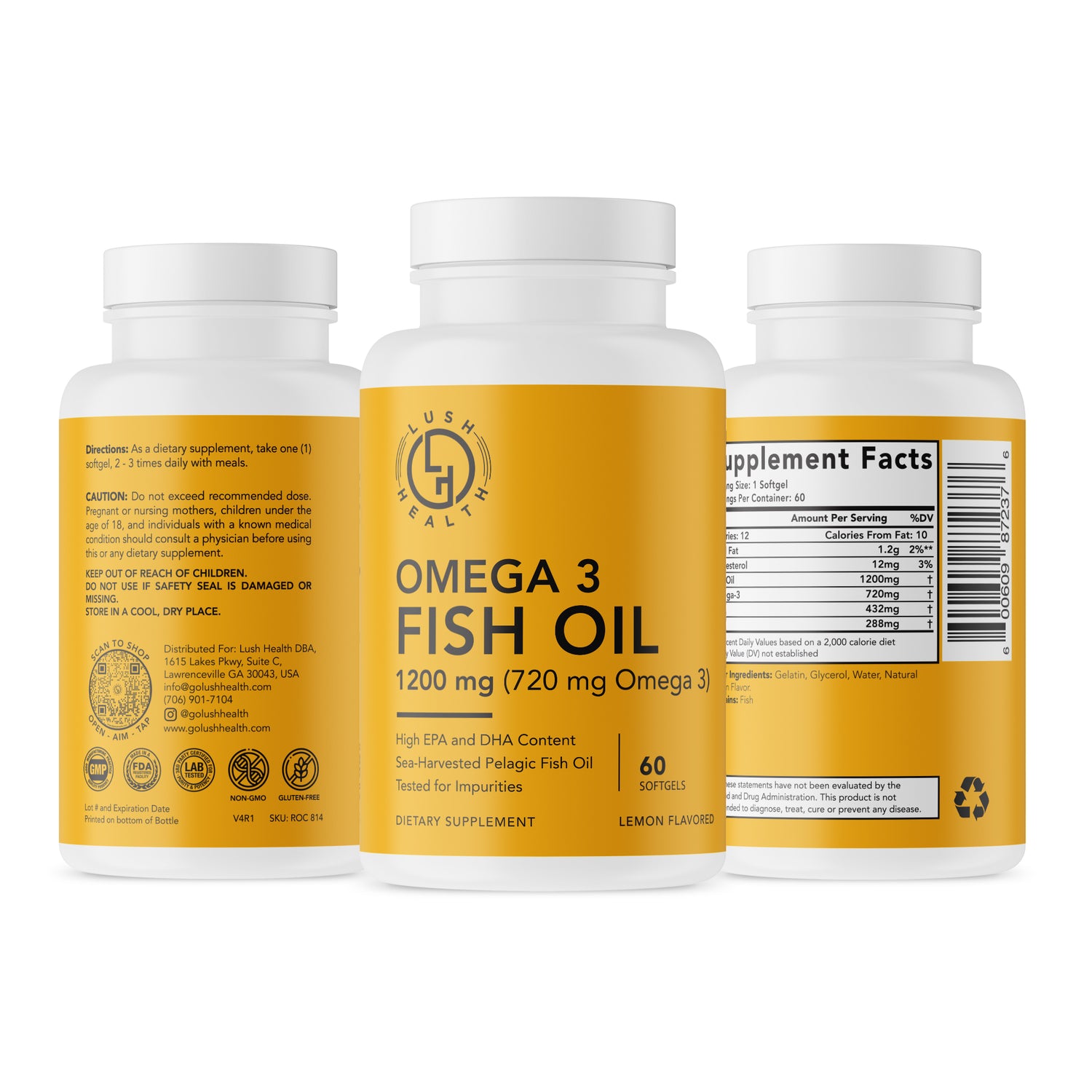 - Gluten-Free - Lush Health’s OMEGA 3 Fish Oil dietary supplement is safe to consume if you follow a gluten-free diet.