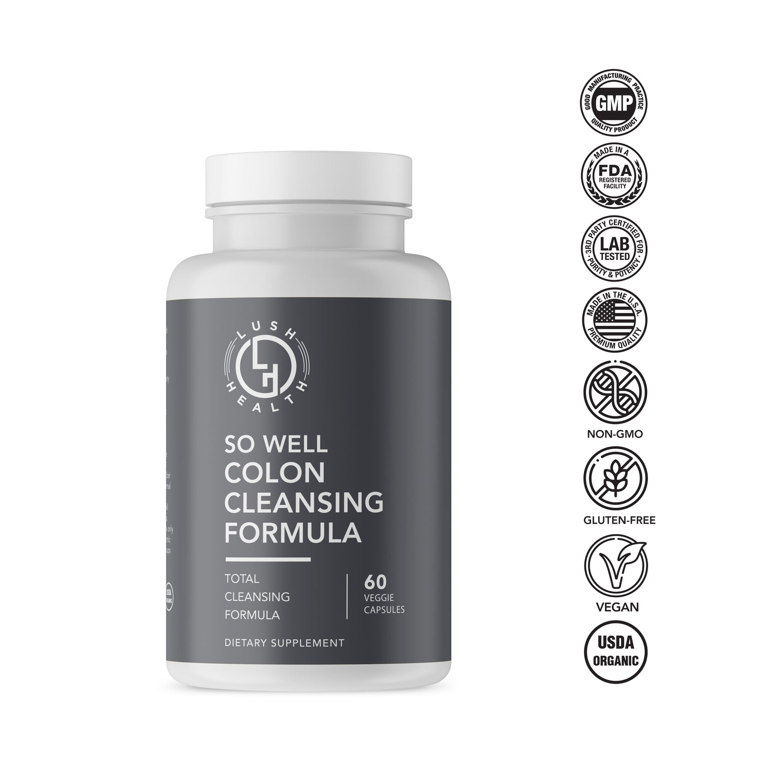 - Non-GMO - Lush Health’s So Well Colon Cleaning Formula has passed the Non-GMO Project Standard that includes rigorous tests such as segregation, risk assessment, quality control, and traceability.